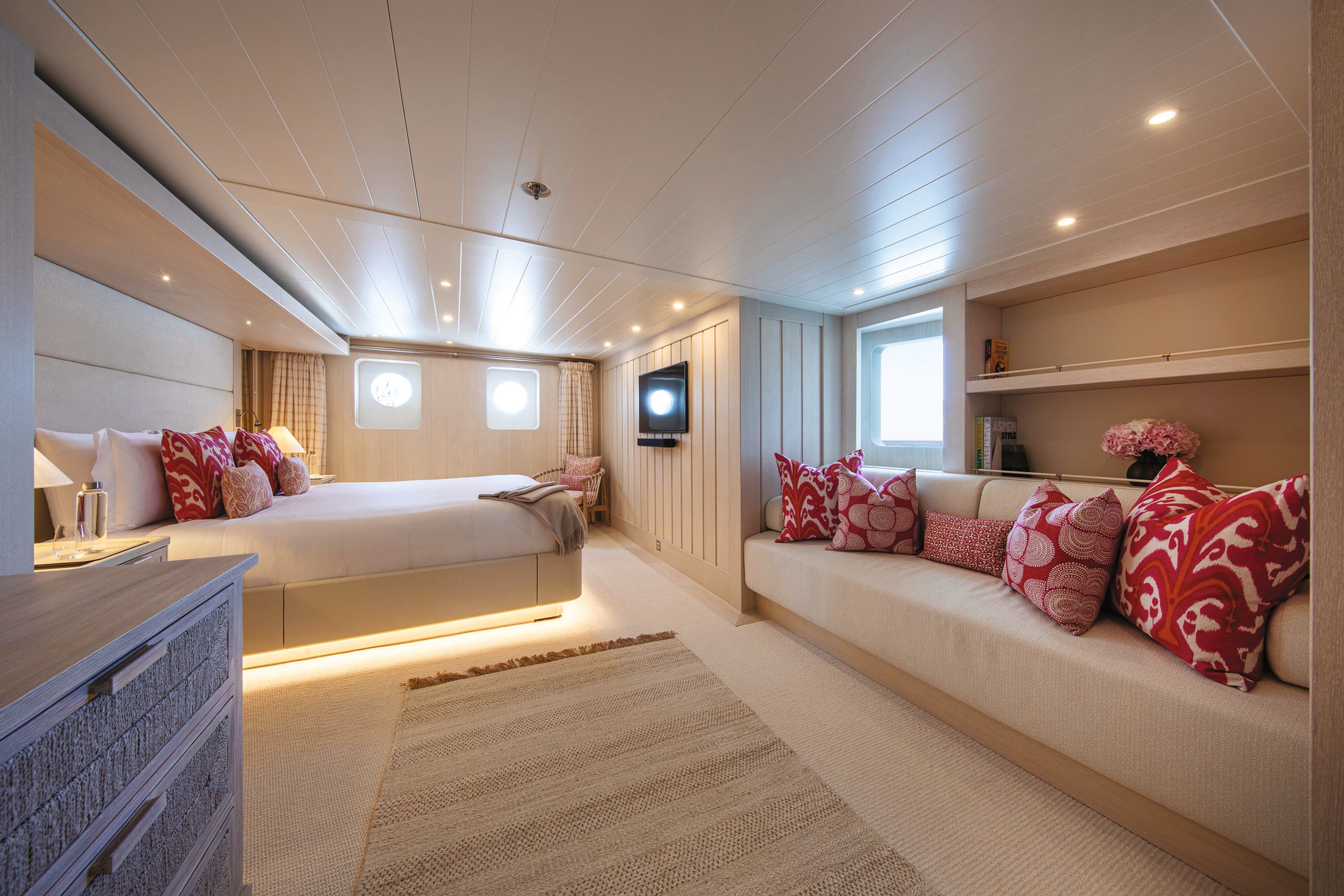 RWD senior designer Gemma Tuersley enjoyed working with the crew and praises chief stew Katie Lock’s invaluable input into the design of the crew areas. “If you have a good layout and everyone has the space that they need, especially the storage, then you have a happy crew and a happy owner! Figuring out what people need, well that’s what we love doing,” says Tuersley.