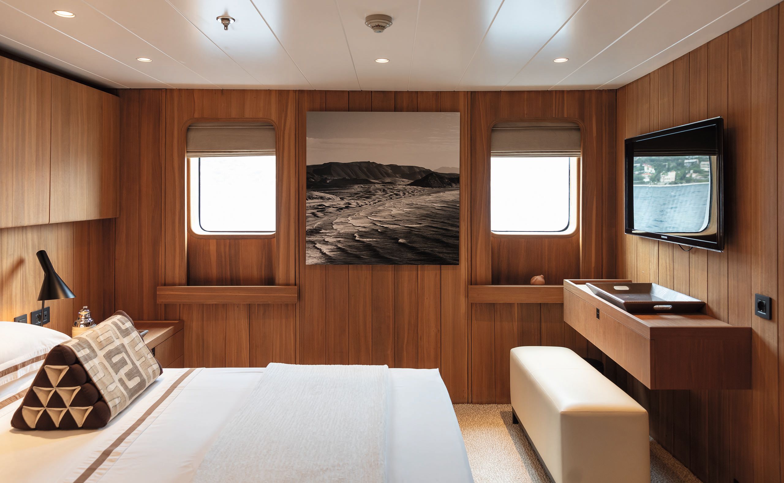 There were no substantial structural changes but RWD rethought and redistributed the interior spaces, redesigning the upper deck in particular. The existing captain’s cabin, for example, was changed into a bar area on that level, one of the owners’ favourite spaces.