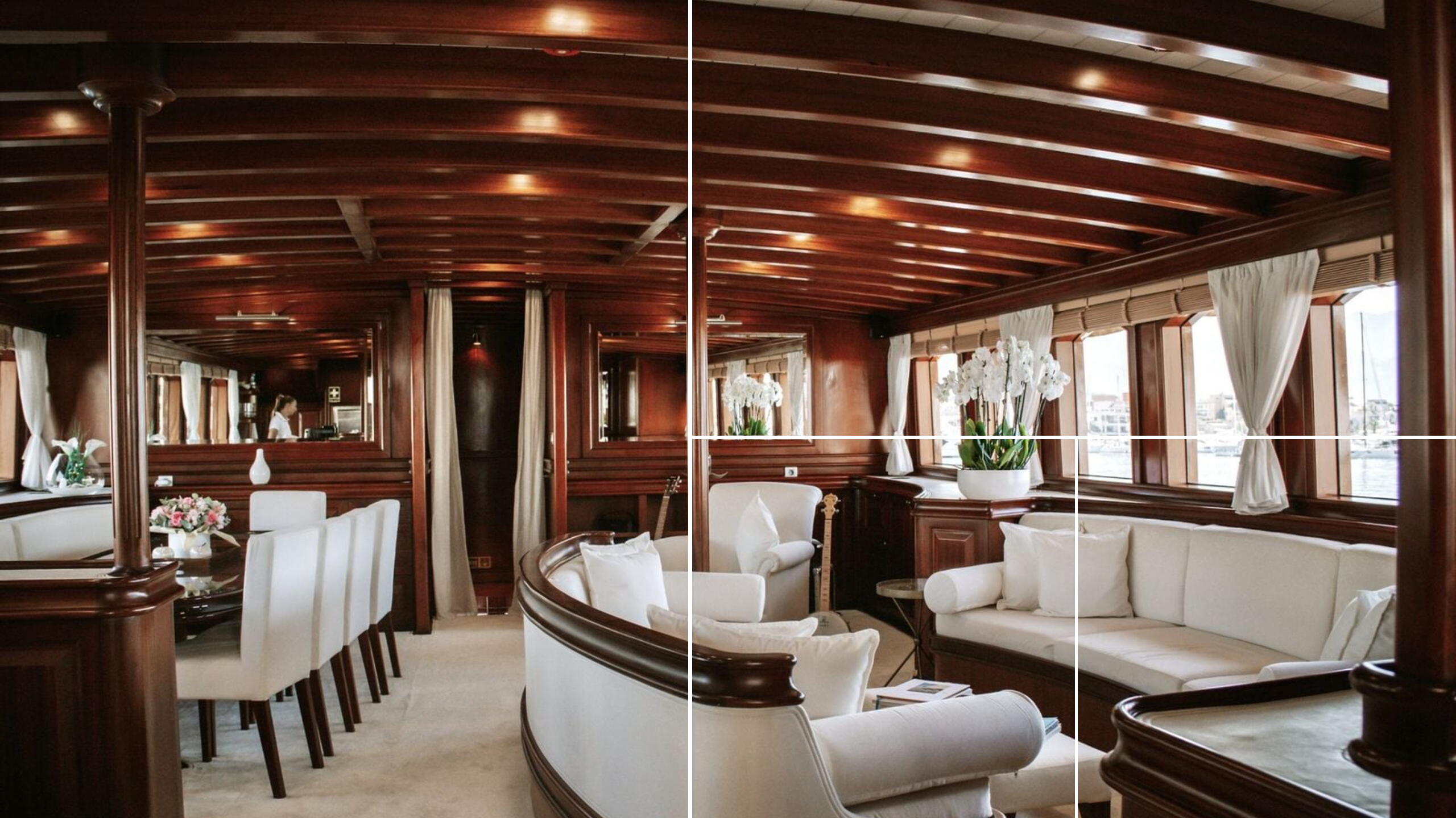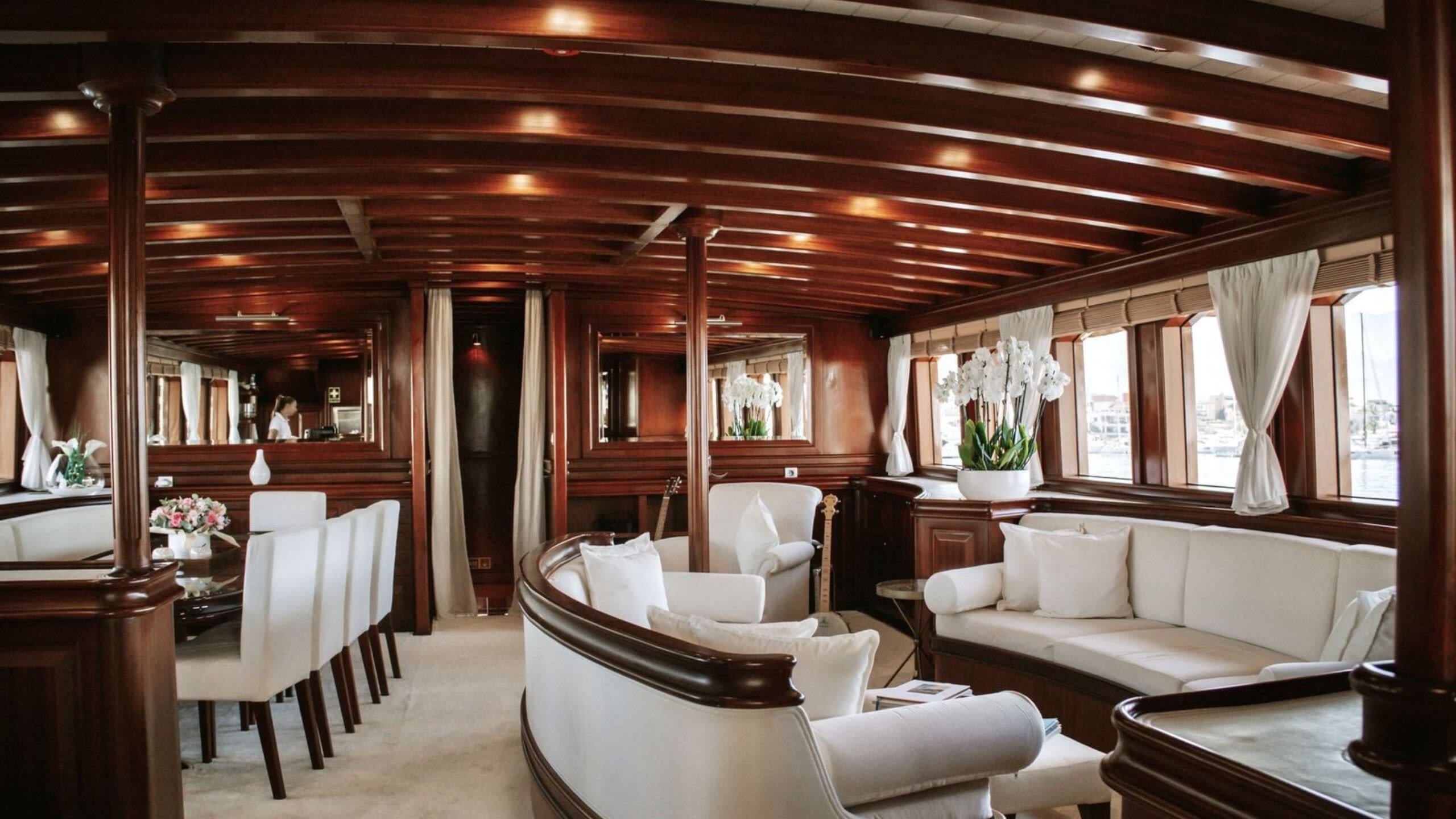 Accommodation is arranged for eight to 10 guests across five cabins, making her ideally scaled for private owners, boutique charter programmes or curated executive retreats. High ceilings amplify the sense of volume, while expansive glazing draws the outside in. Days begin with light filtering softly across timber floors and end with low-lit conversations stretching long past dinner. Crucially for commercial operation, Riana’s layout has also been conceived with efficient spatial flow for crew.