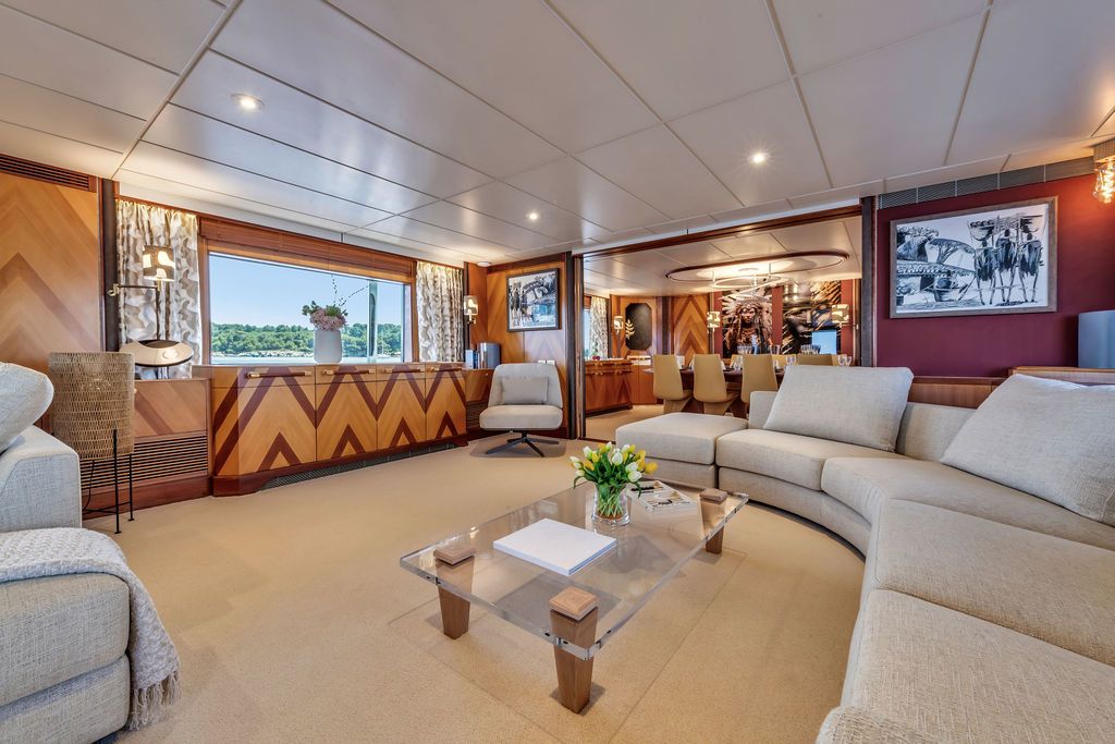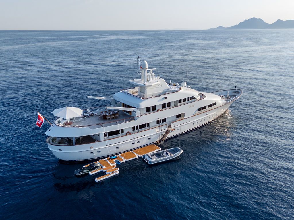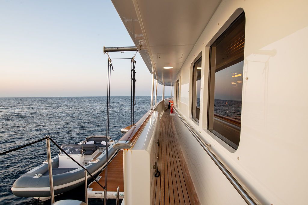 Built by Amels and comprehensively refitted in 2025, 42-metre Sheergold is a proven expedition yacht with the soul of a classic and the systems of a modern explorer. Accommodating 10 guests across four cabins and run by an eight-strong crew, she pairs a steel hull and exceptional system redundancy with original Jon Bannenberg interiors, where herringboned pear wood, brass detailing and leather Chesterfields create a warm atmosphere ideal for polar cruising. Outside, teak decks, ceiling-heated aft lounges and a distinctive canoe stern provide front-row seats to the Arctic. A brand-new water toy collection adds adventure between ice and shore.