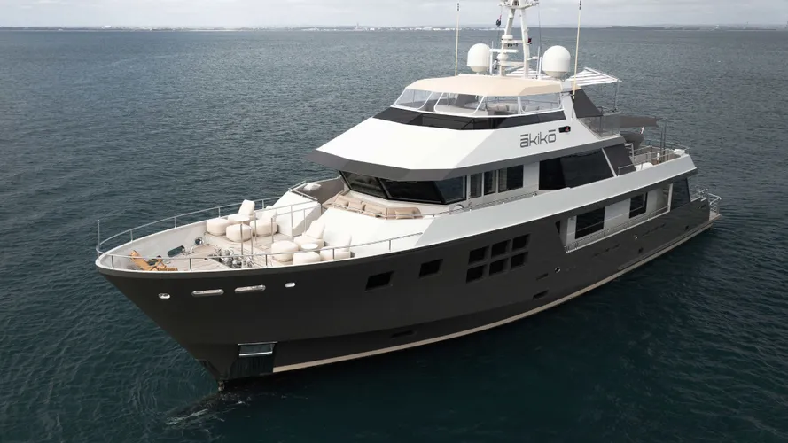The striking 34.2m expedition yacht AKIKO makes her Med debut this season. Originally launched by Alloy Yachts, she now blends timeless design with modern performance — the perfect luxury platform for adventurous cruising in style.