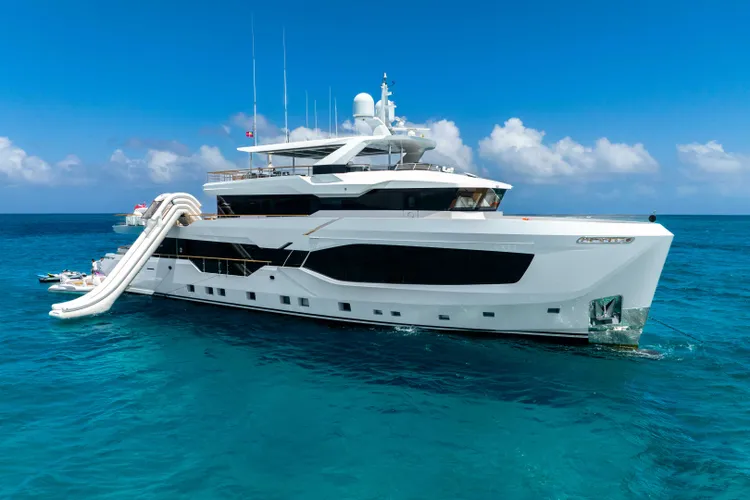 Meet EAU LA LA, the stunning 121’ luxury yacht built in 2023 by Numarine. This sleek and modern superyacht is designed for the ultimate charter experience, blending elegance, performance, and comfort. Her tri-deck layout and beautifully crafted interior by Can Yalman provide spacious living areas for up to 12 guests across six luxurious cabins, including a full-beam master suite with a dressing room and his-and-her en suite. Below deck there are 5 staterooms where guests can enjoy a good nights rest or get ready for a luxurious dinner on board.