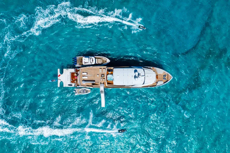 Onboard, guests can enjoy a variety of amenities designed for relaxation and entertainment. Unwind in the beach club, soak in the deck jacuzzi, or host an intimate gathering in the main salon, complete with a 100-inch Smart TV. The sky lounge boasts a fully stocked bar, a lounge area, and office space for added convenience. Equipped with high-speed Wi-Fi and air conditioning throughout, EAU LA LA ensures a seamless and comfortable stay.
