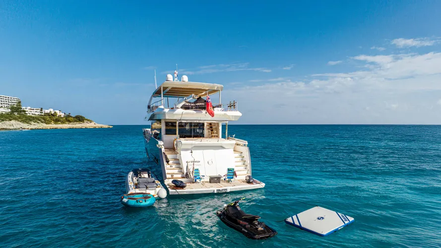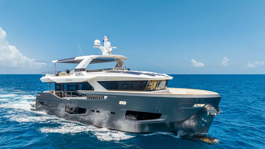 Step into the luxurious world of yacht charter as you embark on an unforgettable journey aboard of 2023 85’ Numarine EXIT STRATEGY. The yacht's sleek and modern design exudes elegance, with panoramic windows that offer breathtaking views of the surrounding islands.
