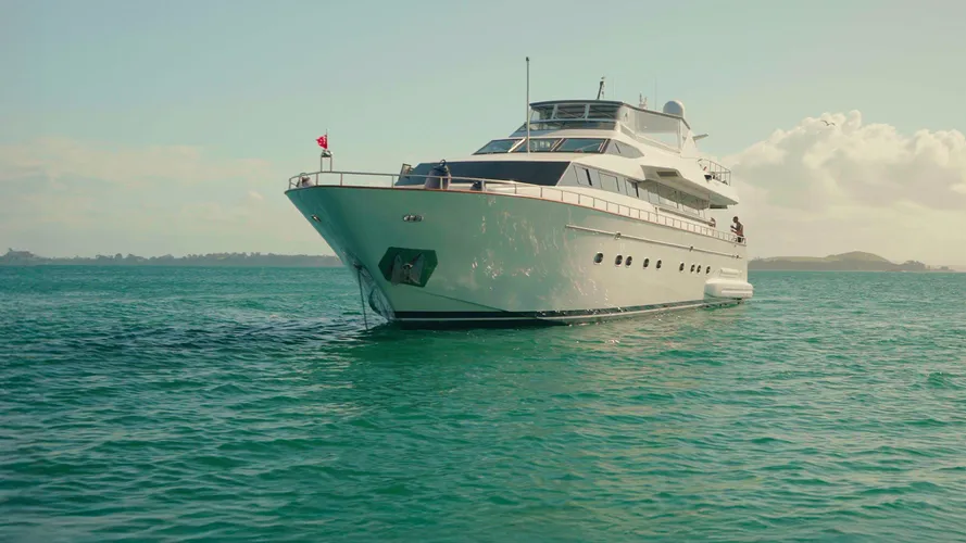 LIBERTE IV is a sleek and stylish luxury motor yacht, perfect for charter adventures in the stunning waters of New Zealand.