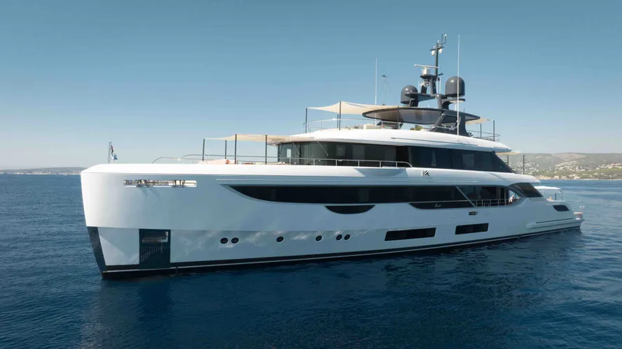 Blending Italian design with modern innovation, MAVERICK delivers the ultimate charter experience. She features the signature Oasis Deck, an infinity pool, fold-down terraces, a master cabin balcony, a dedicated gym, and a 2025 Technohull Alpha 50 chase boat capable of speeds over 50 knots.