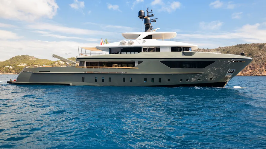 Step aboard the 42m MOKA for the ultimate blend of adventure and relaxation. Her spacious main deck features an infinity pool with contraflow currents, while the beach club offers water toys. Inside, the elegant design combines neutral tones with soft greens and greys, creating a tranquil atmosphere. MOKA accommodates guests in five luxurious staterooms, including a full-beam master suite.