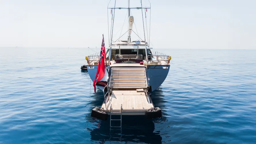 Built with an aluminium hull and superstructure, she can comfortably cruise at 12 knots. Up to 12 guests can be accommodate in 5 spacious staterooms. Her vast deck spaces offer plenty of sunbathing and dining areas, along with a spa pool on the foredeck for unwinding.