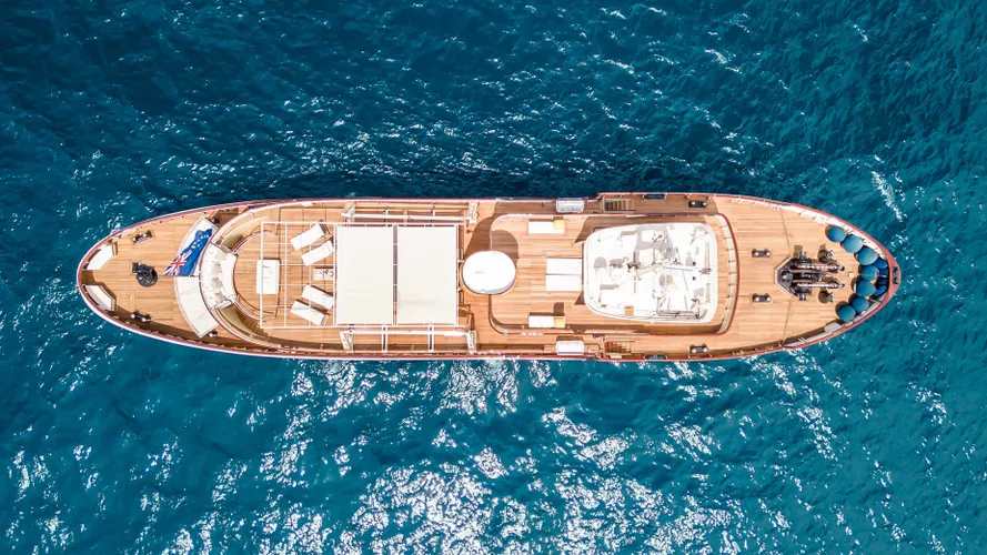 PROMETEJ is a striking explorer yacht combining Italian elegance with true ocean-going strength. Originally built as an icebreaker, she offers exceptional stability and seaworthiness. Fully rebuilt and beautifully refitted, she accommodates 12 guests in 7 refined staterooms, including a private master deck, plus a hammam and massage room — ideal for adventurous cruising in complete comfort.
