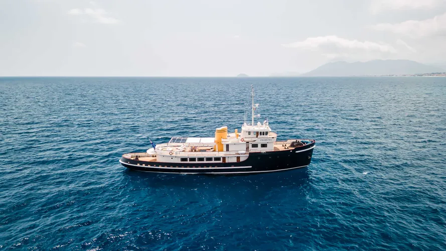 Elegant explorer yacht, rebuilt to the highest standards. Ex-icebreaker strength meets Italian style, seven staterooms, private master deck, hammam & true ocean-going capability.