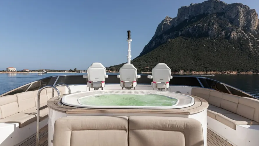 - Expansive sun deck with jacuzzi, wet bar, and panoramic seating
