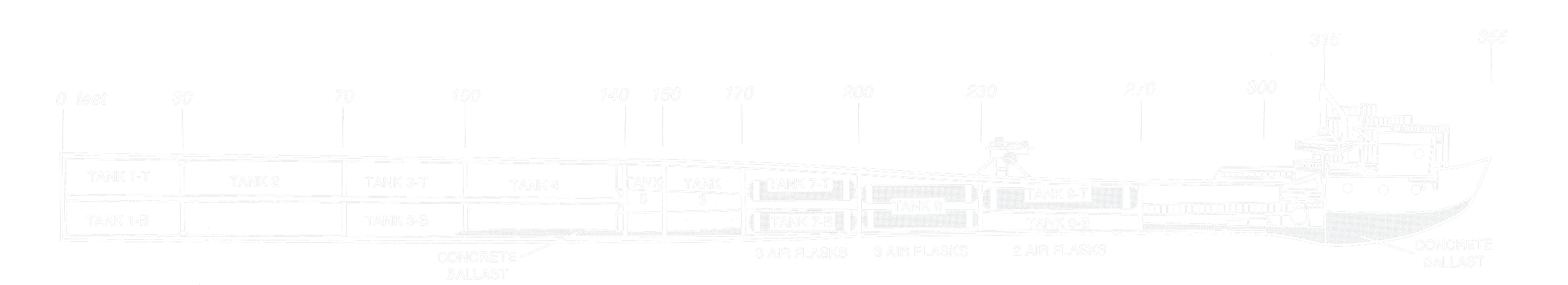 When “flipped”, crew members were confined to the bow, or upper section as it became, above sea level (with the exception of one small bunkroom below the water line).