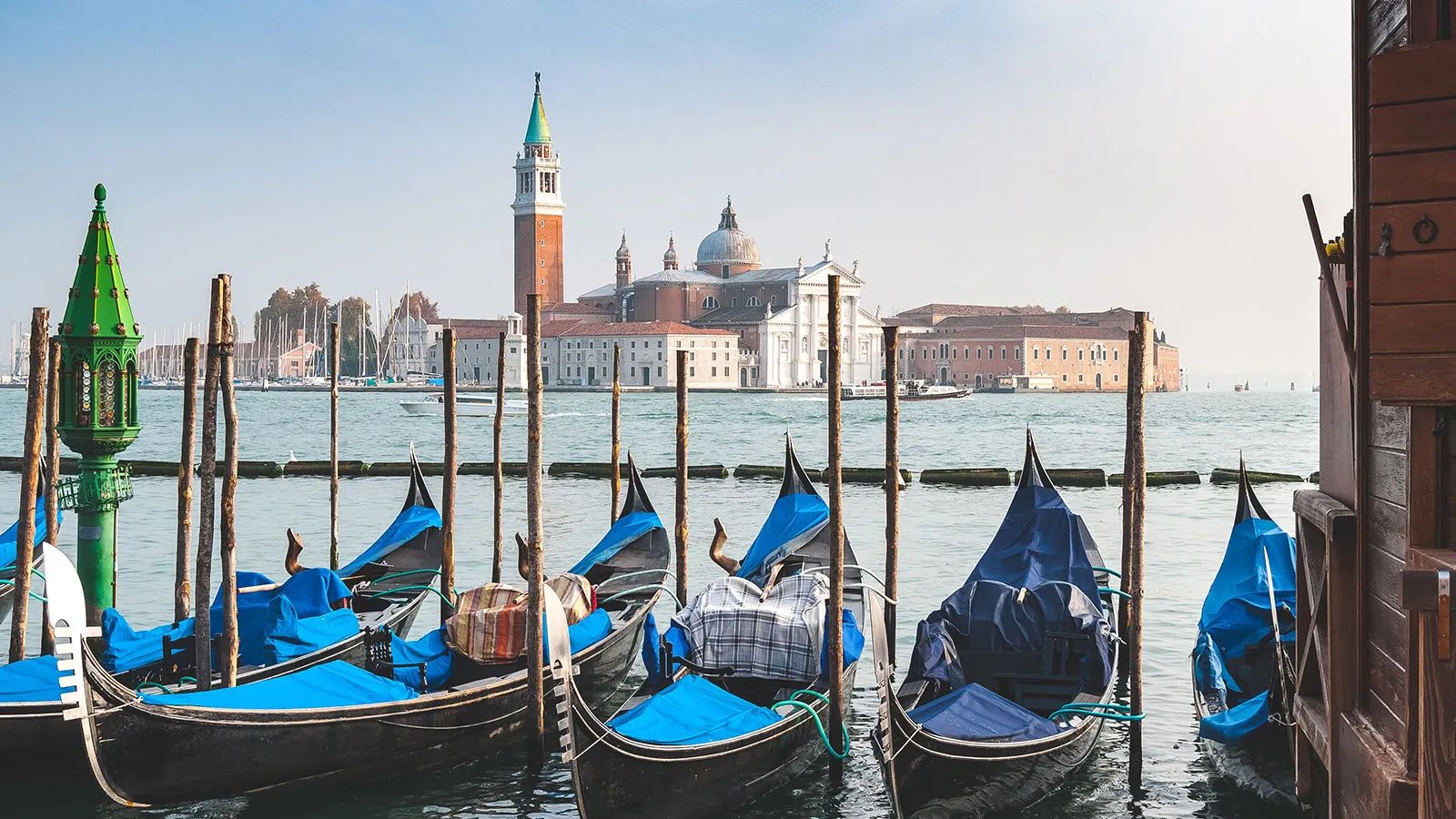 ANDY HOLMES FOR UNSPLASH Gondolas lined up in Venice