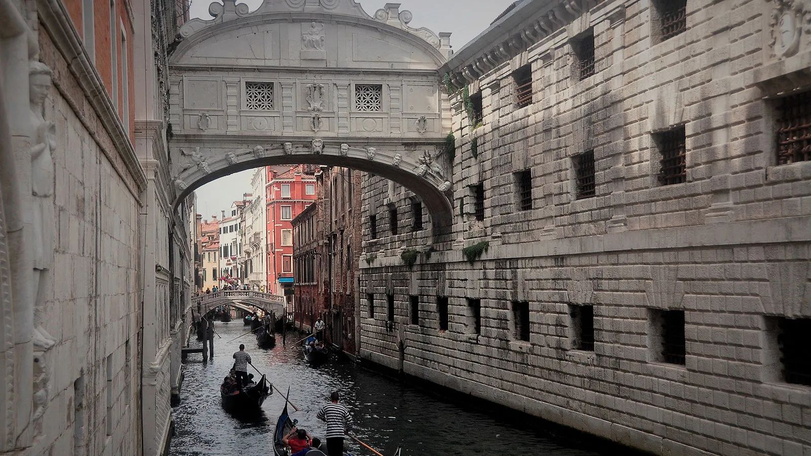 Another iconic landmark is the Ponte dei Sospiri or Bridge of Sighs, a fully enclosed bridge built in the 17th century that once connected the interrogation rooms in the Doge’s Palace to the adjoining prison cells. When prisoners walked across the bridge, they would take one last look at Venice, at freedom, before heading off to face their fates. The jail is now an exhibition and events space.