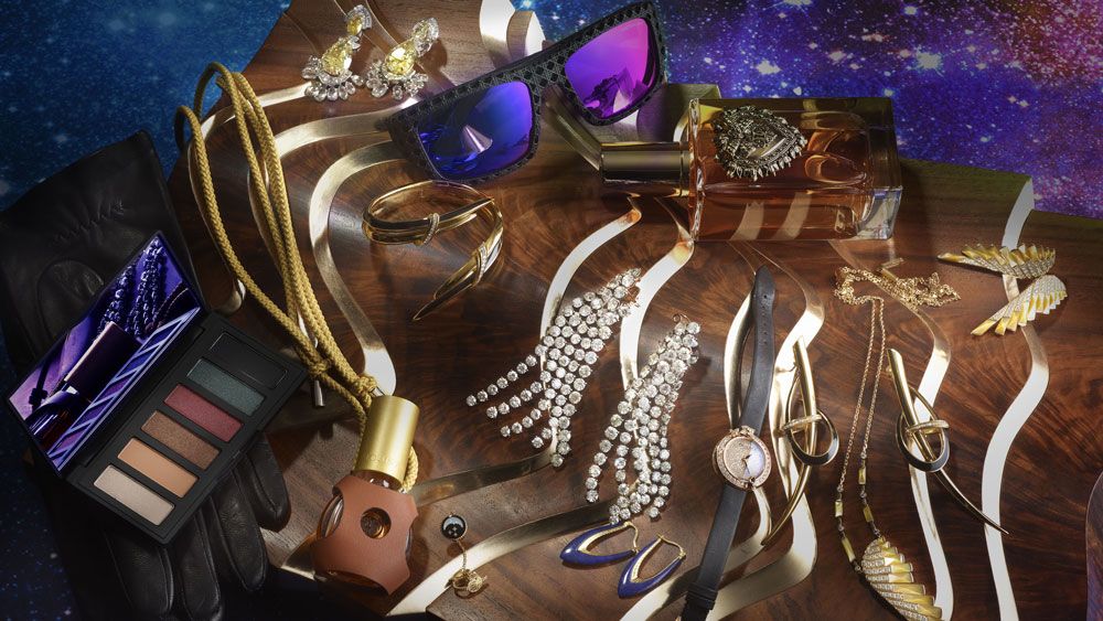 With rich fabrics and a heady blend of marquetry, Galaxy’s interiors are perfect for celebrations after dark. Take your pick of party pieces from this glamorous selection of jewellery and accessories, including Graff’s fancy yellow and white pear-shaped 65.62ct diamond earrings and The Drop Louis XIII cognac case, made to be worn around the neck.