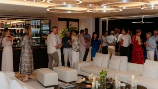 Throughout the evening, guests enjoyed passed hors d'oeuvres and a full bar curated by Bon Appetit SBH, featuring a private chef and cocktails crafted by Shaken, a top-tier mixology specialist. A DJ provided the soundtrack to the evening as attendees gathered to celebrate the upcoming regatta against the backdrop of a Caribbean sunset.