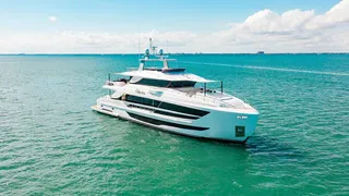 The CC110 Lady Gaga (33.53-metres LOA) was customised for her Chinese owner’s tastes and launched in 2011. However, the yacht still reflects Horizon’s commitment to quality. The CC stands for the Custom Collection and the CC series comprises the custom projects that go beyond what is available in the current Horizon model series. The CC80 Catamaran at 24.7-metres long has an interior that features an on-deck master and four guest staterooms.