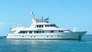Probability was built in GRP as part of the US yard's Delta 122’ tri-deck series and delivered in 1997 with significant upgrades since. Works include new paintwork and the addition of Quantum zero-speed stabilisers. An interior by Claudette Bonville accommodates eight guests in four cabins comprising a full-beam master suite, a main deck VIP suite, a double and a twin, all with entertainment centres and en suite bathroom facilities.