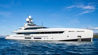 Accommodation is for up to 12 guests across six cabins, including a main deck master cabin and VIP that spans the yacht's full 9.4-metre beam. There is further space for a complement of nine crew. Interiors are owed to Paszkowski in collaboration with Margherita Casprini, who have incorporated brushed oak, lacquered ceilings in light tones, grey leathers, linen and soft nabuk detailing throughout the spaces.
