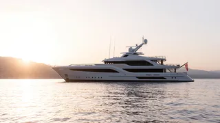 Étoile, listed for sale with Mark Seaton of Yacht & Villa, received a price reduction of €1,049,000 in December. Delivered in 2023 by Italian Custom Line and from the drawing boards of Francesco Paszkowski, the GRP yacht for sale is the 16th hull in the CL106 range developed with Ferretti Group Engineering. Inside, aesthetics were co-designed by Marghertia Casprini and layouts are “open and inviting.” She can accommodate 10 guests in five cabins configured as a full-beam owner’s suite, two double and two twins. Still under the manufacturer's warranty, Étoile has less than 200 hours on her MTU engines.