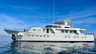 A successful charter yacht, she is powered by twin Caterpillar diesel engines giving her a cruising speed of 12 knots and a range of 3,000 nautical miles at 9.2 knots.