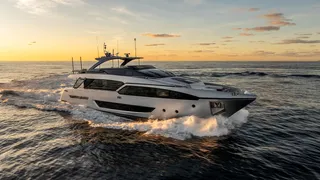 Forward, guests can enjoy a private sunpad area, while a hydraulic swim platform features at the stern for easy water-access. The garage houses a Williams SportJet tender and jet ski.