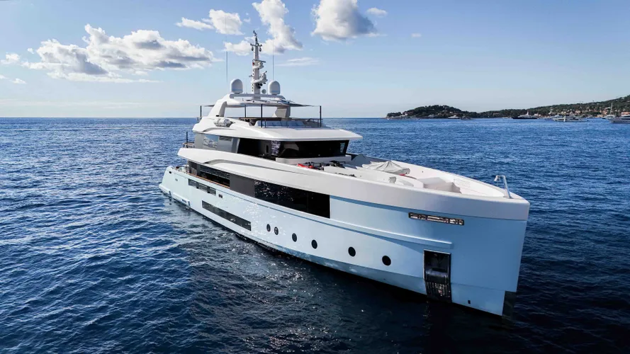 Her contemporary silhouette is complemented by expansive decks, followed by a large beach club with a swimming platform. The tender garage stores toys and gear discreetly, keeping deck areas open and uncluttered. A large aft platform offers direct access to the water, ideal for guests who enjoy water sports or lounging at anchor.