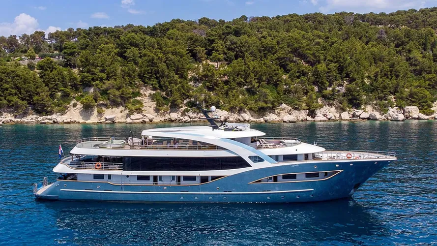 The largest yacht ever built by Sensation Yachts in New Zealand, BELLA was originally launched in 2005 and has been refitted in 2023, blending luxury with the rugged capabilities of an explorer yacht. BELLA boasts a stylish interior, offering expansive living areas. Accommodating up to 12 guests in six beautifully appointed cabins, she ensures ample room for everyone on board. The full-beam on-deck master suite is a true sanctuary, complete with an ensuite bathroom with a shower, a bathtub, and his-and-hers sinks. A private owner's office and generous closets further enhance the luxury. Every cabin boasts high volume, offering unparalleled comfort.
