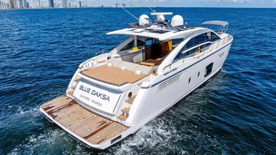 We proudly present this highly customized 64' Absolute! She was built by an extremely knowledgeable and detail-oriented owner who has made very well-planned upgrades to the vessel for cruising pleasure. You will not find a more user friendly, accessible boat. The 64' boasts a fantastic ride and 360-degree visibility at the helm. She is laid out with upper and lower salons featuring 3 staterooms, with one stateroom having a customized open layout equipped with an office and convertible bed.