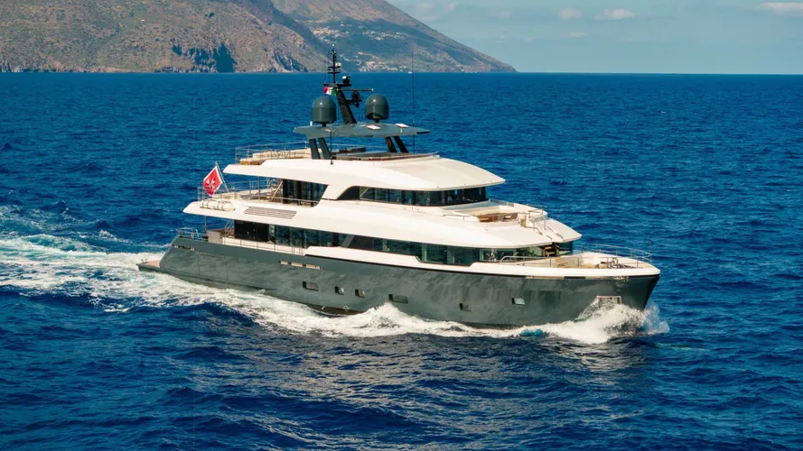 The 124 Martinique model's fast-displacement hull is built from high-tensile steel, delivering a lighter yacht without compromising strength or comfort. Designed by Rene van der Velden with naval architecture by Diana Yacht Design, COCOON combines a timeless, elegant profile with a smart layout and premium onboard comfort.