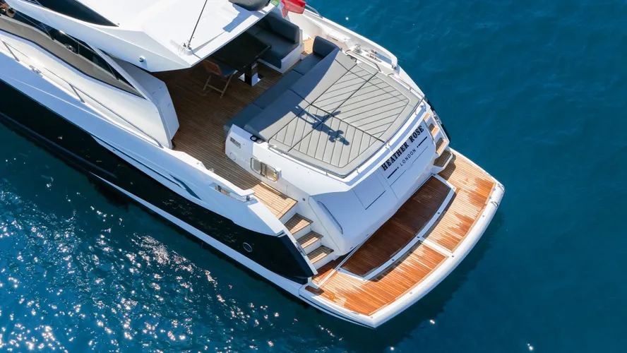 HEATHER ROSE is a 22.82M (74'10") Sunseeker Predator 74 XPS Special Edition, built in 2021 and delivered in 2022. Used strictly private, she has been maintained to the highest standards. Her hull features a beautiful, black-tinted gelcoat, a carbon opening electric sunroof and black-painted upper superstructure, enhancing her sleek and sporty design.