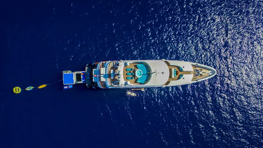 Delivered to Lloyd’s classification and fully refitted in 2025, HOLIDAY combines Rossinavi-standard construction with timeless Italian styling by Roberto Del Re. Offering a rare combination of strength, elegance, and endurance, she delivers transatlantic range and supreme comfort at sea. Constructed in steel and aluminum, HOLIDAY is equipped with twin 1,300hp Caterpillar engines and zero-speed stabilizers for smooth, stable cruising both underway and at anchor.