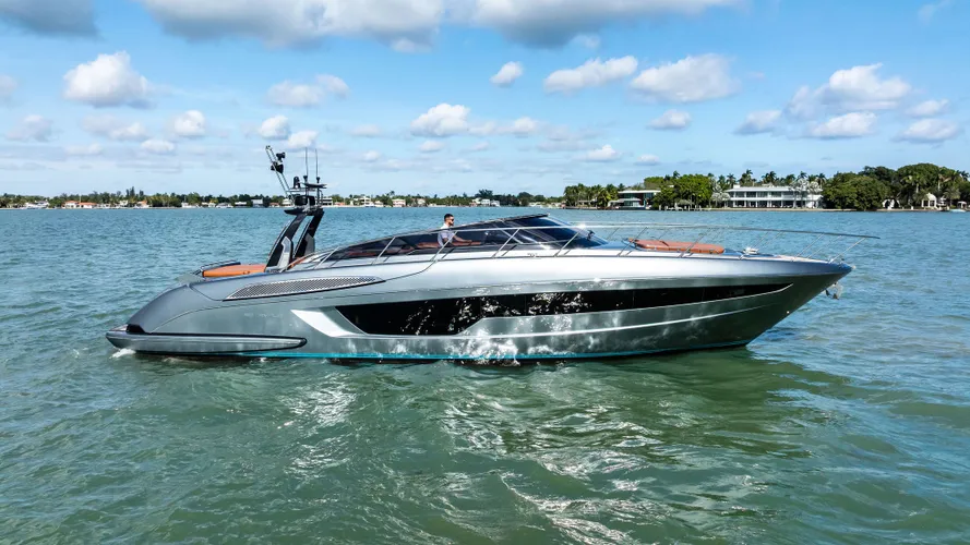 This 56' Riva Rivale is the latest example of the finest marine luxury vessel. Her stunning exterior is sultry, and the interior is filled with glossy mahogany timber, electric Venetian blinds, and ambient lighting. Hailing from the Ferretti Group, this model is a piece of marine artwork.
