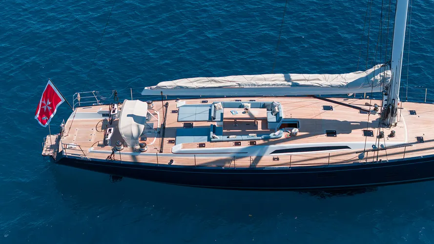 She accommodates eight guests in four spacious cabins, with additional quarters for four crew located aft. On deck, she features a generous centre cockpit with sun-lounging and dining areas, offering a comfortable and secure environment for relaxation and entertaining at sea.