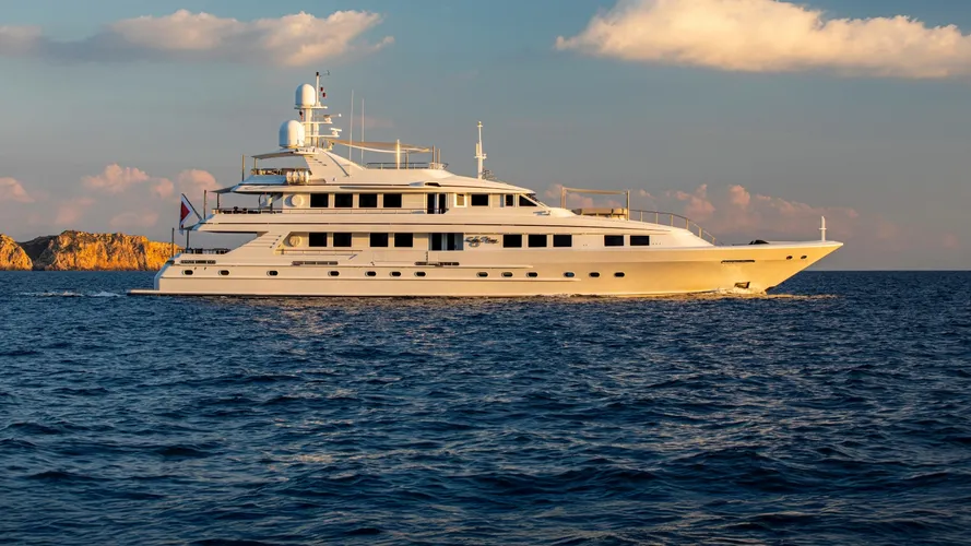 Designed as a near coastal yacht by Broward’s inhouse team, LADY NORA has only had two owners since her delivery in 1998. Custom-built in aluminium with teak decks, she can accommodate up to thirteen guests across her five well-appointed staterooms.