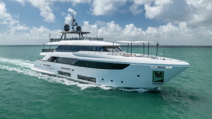 Inside, every space is an affirmation of the Navetta 33 vision. the areas dedicated to the family and their guests open up on all 4 decks - from the wide-body master suite forward on the main deck to the 4 guest cabins below. Custom Line's advance technology assures comfort and stability, whatever the conditions. It is a state-of-the-art masterpiece.