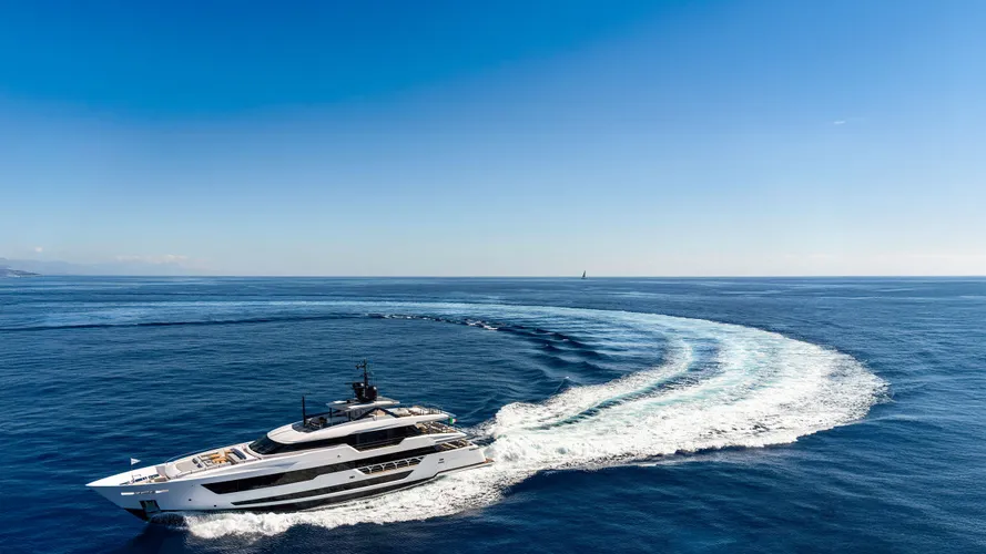 Her expansive four-deck layout offers exceptional volumes and seamless flow between interior and exterior spaces, creating an atmosphere of light, space, and privacy. Built with advanced composite and carbon fiber construction, Miotu delivers outstanding performance, comfort, and efficiency — all wrapped in unmistakable Italian elegance.