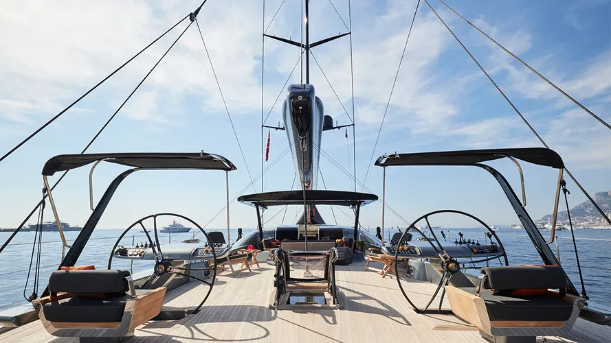 MIRASOL yacht comes with an aluminium hull and superstructure, with new teak decks added in 2018. She has carbon fibre spars as well as carbon rigging and a new North 3Di sail wardrobe, as of 2020. A hydraulic bimini has been incorporated MIRASOL yacht’s structure above the large cockpit, and this raises and lowers in a similar way to the roof of a hardtop convertible car.