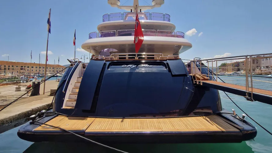 Fresh from refits in 2020 and 2022, MY SISA is presented in immaculate condition. Highlights include a full repaint, new sundeck bathroom, updated soft furnishings, and exterior seating, along with new navigation electronics, a monitoring system, and a 130 cm Intellian TV Sat antenna.