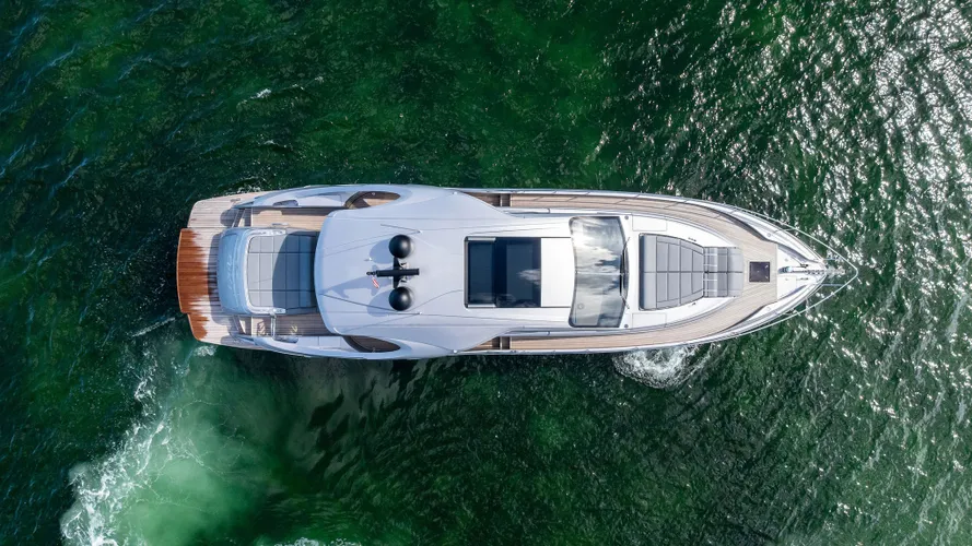 The pioneering construction solutions allow the Pershing 7X to reach the incredible speed of 50 knots. The boat comes with 1800 MHP twin MAN V12 engine. The innovative Dynamic Positioning System lets Pershing 7X maintain its position even when winds or currents are strong.