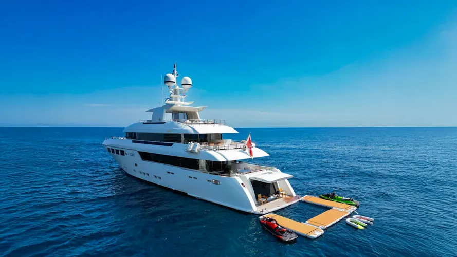Her expansive sundeck with jacuzzi, zero-speed stabilizers, and economical cruising performance make her a standout vessel in the 40-metre range, ideal for private use or as a successful charter platform.