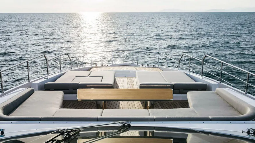 Penned by Stefano Righini, PANTERA’s exterior is defined by a sleek, streamlined profile, with elongated glazing and sharp lines that give the yacht a confident, contemporary stance. Her construction combines carbon fibre with a GRP hull and superstructure, resulting in a lightweight yet robust platform that enhances both efficiency and performance.