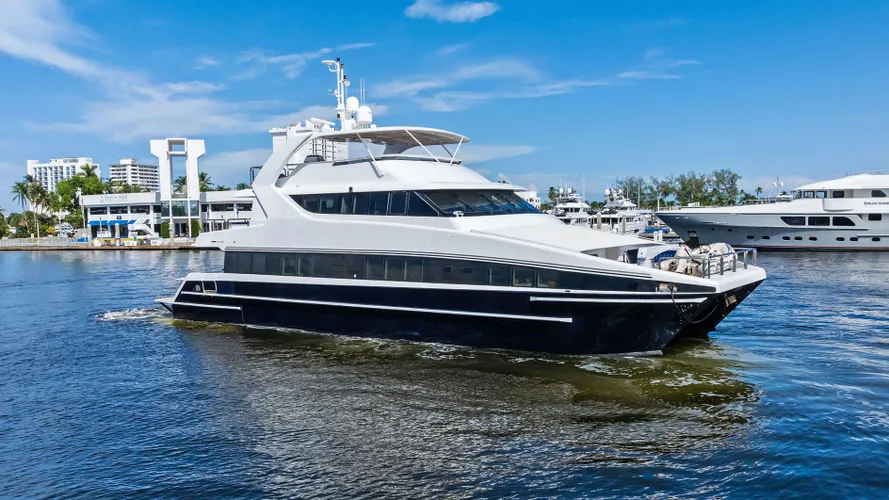 The owners purchased this catamaran about a year and a half ago as part of a real estate development project at Bahia Mar. PEGASUS IX was intended to serve as a floating support platform for the project — essentially a showcase yacht during the construction phase. Since the development plans changed, the catamaran was never used by the owners.