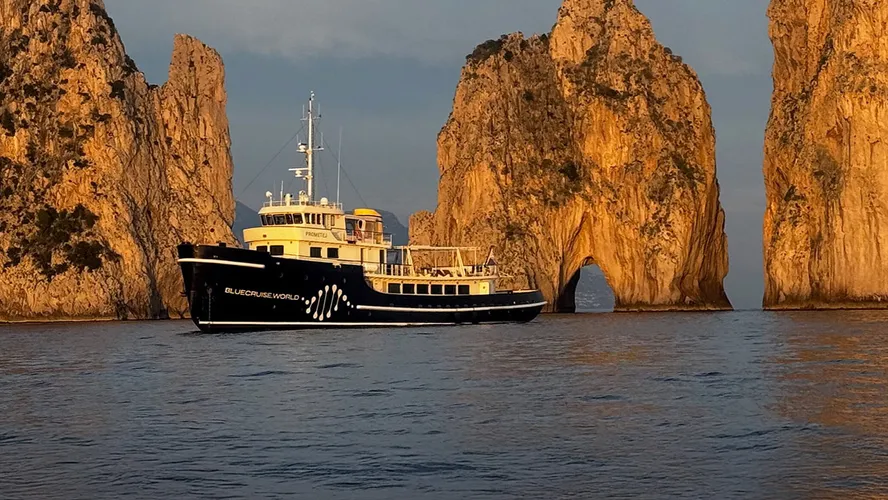 Built in 1956 as an Arctic icebreaker, PROMETEJ was completely transformed by Italian fashion designer Alberta Ferretti. Following a comprehensive refit at Adria Docks in Croatia (2024/2025), she now offers state-of-the-art equipment married to a robust ice-strengthened steel hull. PROMETEJ immediately communicates strength and purpose while providing the luxury surroundings for longevity, well-being and relaxation.
