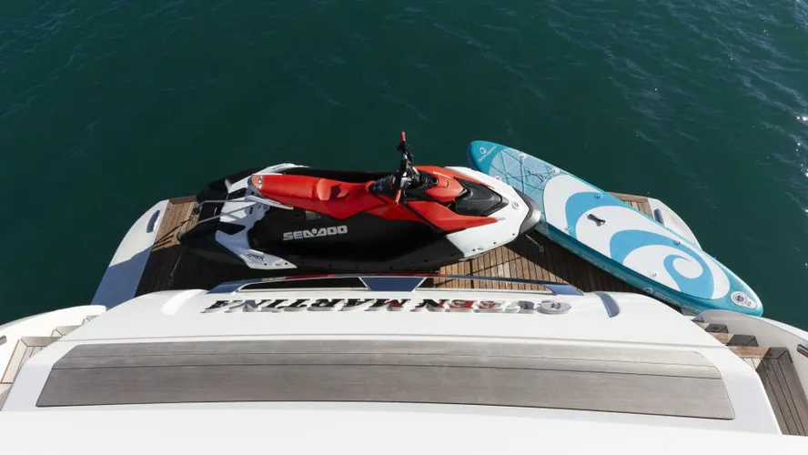 Built to Bureau Veritas classification and MCA compliance, Netanya 8 offers a range of 5,000 nautical miles and is equipped with two sets of Quantum Zero Speed stabilisers for comfort underway and at anchor. Her machinery and electrical systems have been maintained through continuous investment, with recent works including a full Awlgrip repaint and top-end overhauls of both Caterpillar engines carried out in 2024. Two new Castoldi jet tenders were added to her inventory in 2023.
