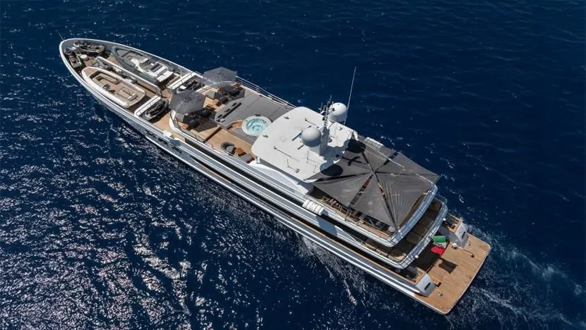 Her expansive exterior decks are enhanced by a superb 60M² sundeck featuring alfresco dining, a bar, a BBQ, and a hot tub, creating an exceptional setting for entertaining, whether at anchor or hosting up to 100 guests quayside. A versatile beach club and selection of water sports gear complete the offering.