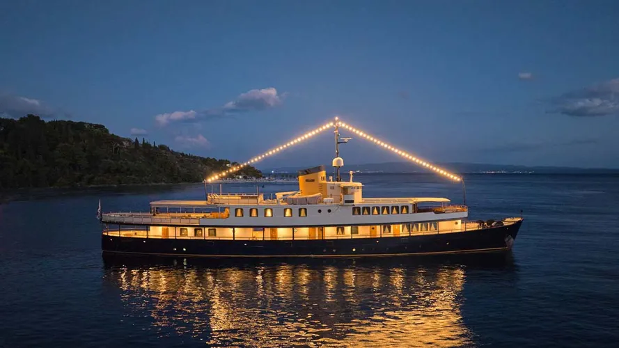 But her story began well before that, on the drawing boards of an Italian design firm in the 1930s. Her blueprints survived the war, eventually finding their way to Pula, Croatia, where a well-known shipyard, Uljanik, captured the golden age of ocean liners in her exterior profile—a single glance and it’s obvious she is of a different era.