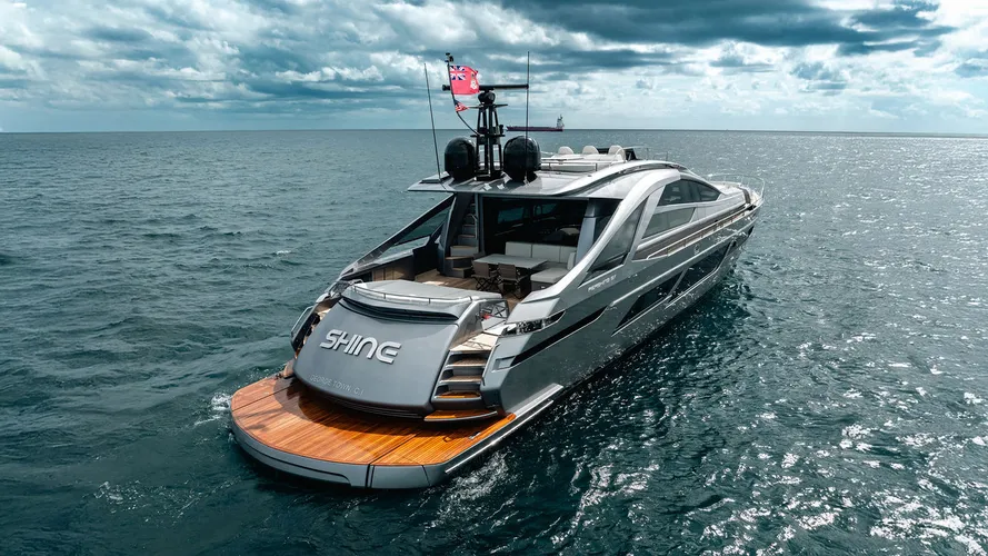 Designed by a passionate boater with a love for speed and a history of owning Pershing yachts, SHINE was built for the U.S. market, but is also capable of serving as a global vessel. This versatility is thanks to her upgraded shore power frequency converter and the installation of both 110V and 220V outlets throughout the boat.