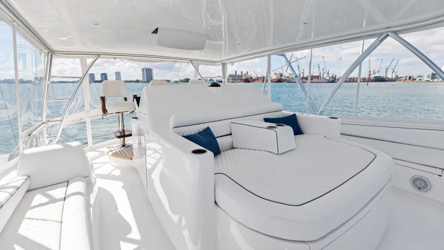 TEAM HARVEY boasts many custom features, including, but not limited to: an Omni 10 sonar, a custom tackle room, a full faux package, teak covering boards and decks, and custom sound insulation throughout the salon.
