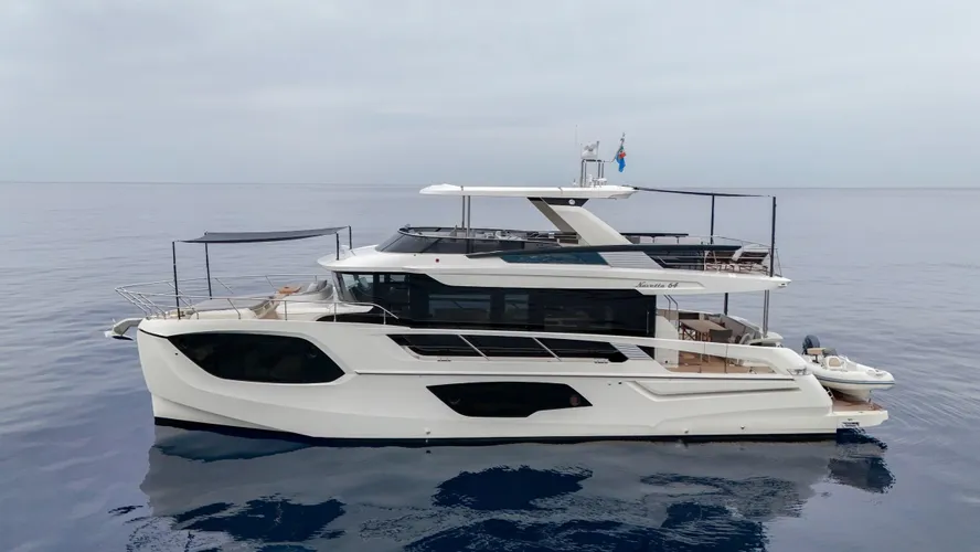 - Unique aft beach club: a first under 70 ft: convertible into a double cabin with sliding doors, watertight glass access, and the rare chance to sleep under the stars by the sea.
